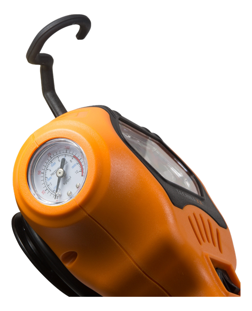 Förpackningens innehåll: Luftkompressor med arbetslampa TX-129, Cykel / Säkerhet / Kulventil, Användarmanual